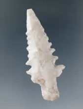 Incredible serrations on this 2" tall cornernotch arrow point found in Texas. |