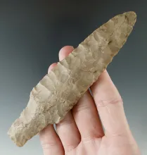 Large and nice! 5 5/16" Beautifully flaked early long Stemmed Lanceolate found in Texas. |