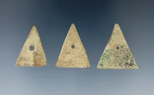 Set of 3 7/8" metal Historic Era Iroquois Arrowheads recovered at the Burrell Creek site Geneva NY. |