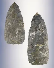 2 1/2" Ohio Dovetail - well patinated chert. Classic style with excellent grinding to the base. |