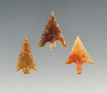 Set of 3 finely made Wallula points found in Wasco Co., Oregon. The largest is 3/4". |