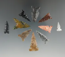 Ten Sierra Sidenotch Points. Largest is 1 1/4". Found near the Columbia River, OR. |