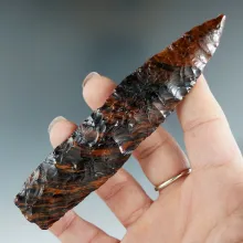 4 3/4" Paleo Lanceolate Knife - mahogany obsidian. Found near Massacre Lake, Oregon. |