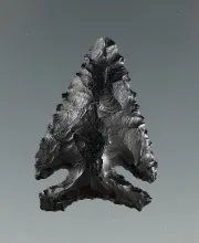Nice basal style on this 1 3/16" Piquin point made from obsidian found in Oregon. Ex. Jim Hogue. |
