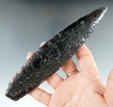 Sale Highlight - Pictured! 6 7/8" Early Stemmed lance - gem quality obsidian - Lake Co., OR. 2 COAs. |