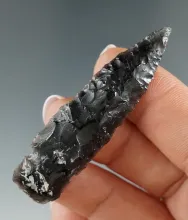 Excellent style and craftsmanship! 2 3/4" well styled heavily serrated obsidian Gatecliff Split Stem