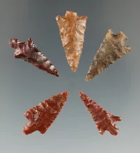 Set of five nicely made Columbia River Gem points, largest is 15/16". |