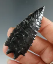 Excellent flaking, style and serrations on this 2/3/8" obsidian Pinto Basin found in Oregon. |