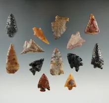 Group of 13 assorted Arrowheads found near Sauvies Island, Oregon in the 1940's. |