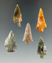 Group of 5 Assorted Arrowheads made from nice material found near the Columbia Rvr, Wasco Co., OR |