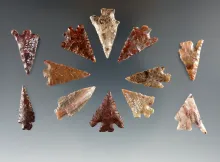 Set of 12 assorted Columbia River arrowheads found by Kaye Don Bruce. Largest is 15/16". | OREGON | 65.00 | |
