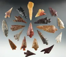 Group of 20 assorted Columbia River arrowheads, largest is 1 5/8". |