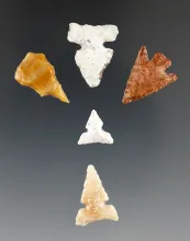Set of five Columbia River arrowheads made from attractive material, largest is 1 1/2". |