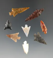 Set of eight nicely made Columbia River points, largest is 1 1/16". |