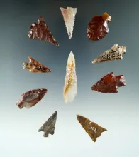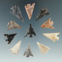 Group of 11 Columbia River arrowheads, largest is 1 5/16". |