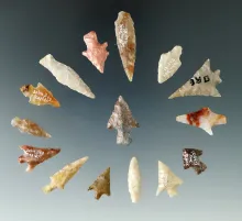 Set of 15 Columbia River Gem points made from attractive materials found by K Don Bruce. |