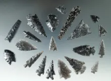 Group of 20 Obsidian points found in Oregon, largest is 2 3/8". |