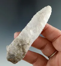 1 5/8" Stemmed Dart Point made from White Agate, found near the Columbia River. |