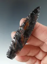 2 3/4" Paleo Lind Coolee - triple-flow obsidian with excellent flaking. Found in Lake County Oregon. |