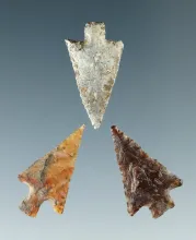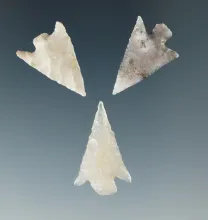 Set of three Columbia Plateau points found near the Columbia River, largest is 7/8". |