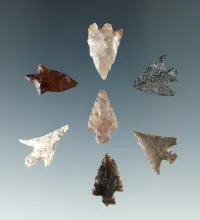 Set of seven Columbia River Gem points, largest is 5/8". |