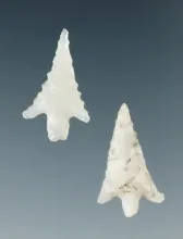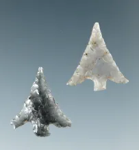 Pair of low flaked Columbia Plateau points found near the Columbia River, both around 5/8" long. |