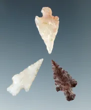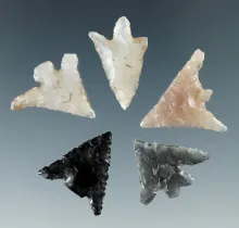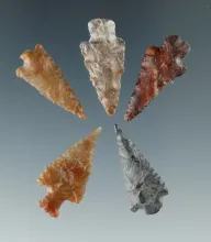 Set of five assorted Columbia River arrowheads, largest is 15/16". |