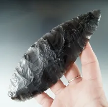 Large and nice! 6 1/8" beautifully banded semi translucent obsidian Blade Lake County Oregon. |