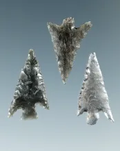 Set of three finely flaked obsidian points found near the Columbia River, largest is 11/16". |