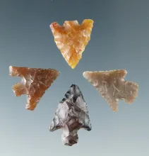 Set of four Columbia River arrowheads, largest is 3/4". |