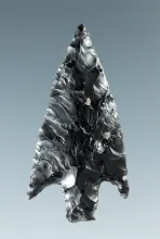 1 1/4" Stemmed point that is beautifully flaked from obsidian found in Oregon. |