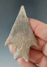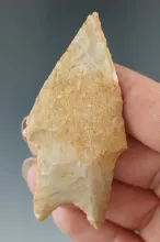 Excellent flaking and style on this 2 7/16" Ensor Split Base found in Texas. |
