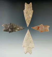 Ex. Museum! Set of 4 Pedernales Points found in Texas, largest is 2 5/8". |