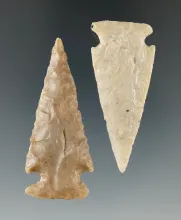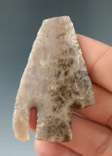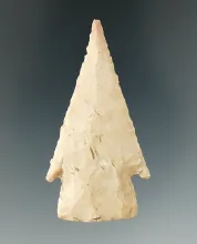 2 1/16" Well flaked Calf Creek found in Texas with one very nice long Barb. Easily restored. |