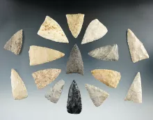 Group of 16 Texas leaf and triangle Blades, largest is 2 1/16". | TEXAS | 65.00 | |