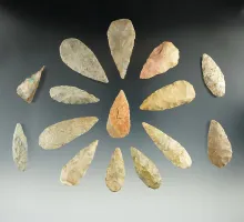 Group of 15 triangular leaf points found in Texas, largest is 2 1/8". | TEXAS | 60.00 | |