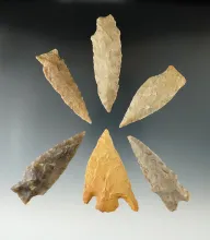 Group of six Marshall points found in Texas made from various materials, all in nice condition. TEXAS 120.00