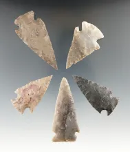 five Williams points found in Texas in very good condition, largest is 2 7/16". TEXAS 85.00
