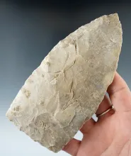 Very large 5 7/16" Flint Blade that is heavily patinated found in Texas. |