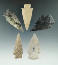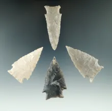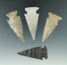 Set of four well styled Ensor points found in Texas, largest is 2 1/16". TEXAS 160.00