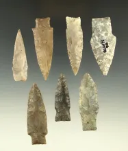 Set of seven Texas area arrowheads, largest is 2 3/8". | TEXAS | 200.00 | |