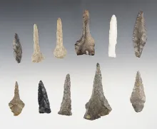 Two rare Paleo Uniface Drills. One is 3 1/2" long. Found in Crawford and Richland Counties. |