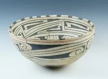 4 5/8" diameter Anasazi Bowl with great paint & nice design. New Mexico. Multiple pieces glued. |
