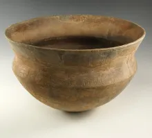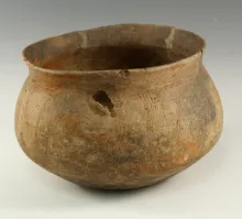 7" tall by 7" wide Caddo Seed Jar with suspension lugs (S.W. Arkansas). Some restoration. |