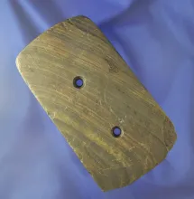 4 5/8" Rectangular Gorget made from banded slate found in Stark Co., Ohio. Dickey COA. |
