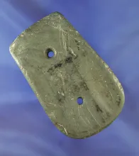 3" long slate Gorget that was anciently salvaged and tallied. Licking Co., Ohio. Dickey COA. |