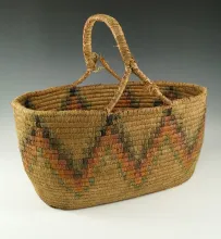 Old, colorful and nicely woven 5 1/2" wide basket. |