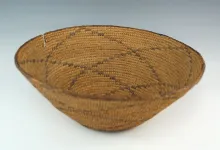 6" wide tightly woven New Mexico basket. Nice display item. |