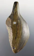 4 1/4" Animal/Lizard Style Banded Slate Birdstone. Found in Noble Co., Indiana. Ex. C. Parks. |