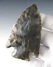 2" Plainview found in Lake Co., Oregon. Made from well patinated Obsidian. Carlos Black COA. |